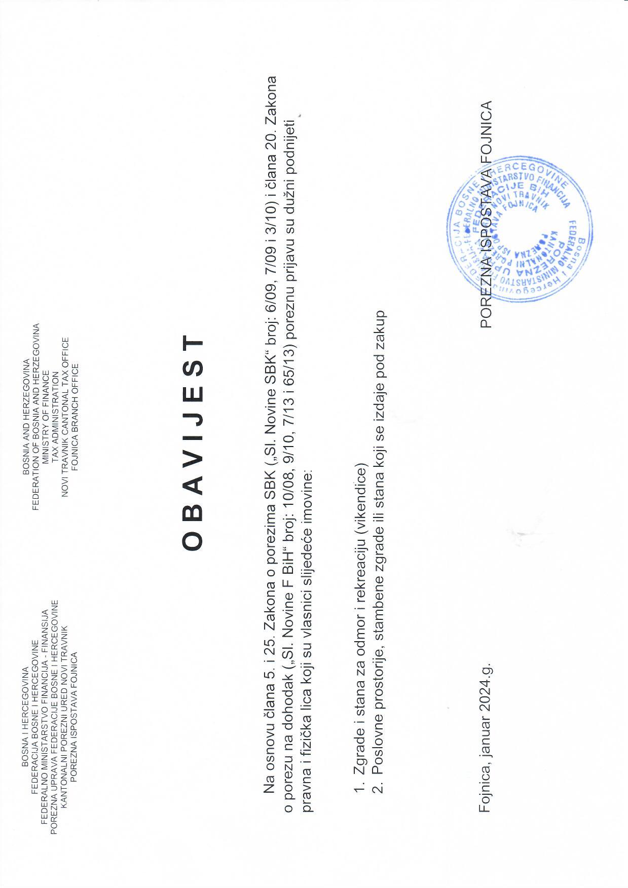 Obavijest- Porezna prijava